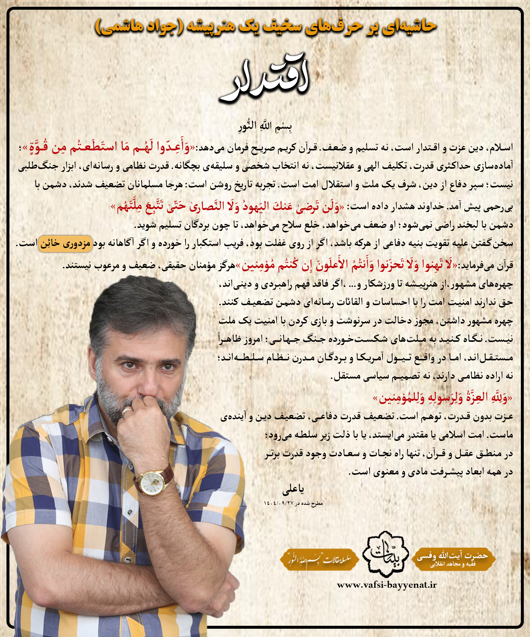 برچسبها: جواد هاشمی سید جواد هاشمی سلبریتی چهره سینمایی سینما مذهبی صورتی قدرت نظامی جنگ دوازده روزه آیتالله وفسی حامد وفسی بسم الله النور
